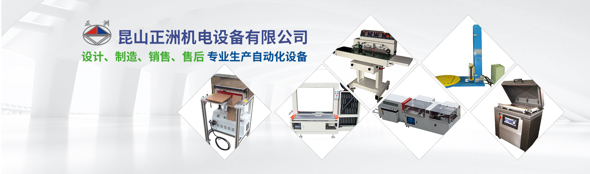 昆山正洲機(jī)電設(shè)備有限公司14年以來(lái),堅(jiān)持設(shè)計(jì)、制造、銷(xiāo)售、售后服務(wù)一條龍服務(wù)。生產(chǎn)經(jīng)營(yíng)范圍迅速擴(kuò)大,形成以下產(chǎn)品系列: 自動(dòng)封箱系列;自動(dòng)打帶系列;自動(dòng)封口熱收縮系列;棧板自動(dòng)包裝系列;抽真空包裝系列;省力真空搬運(yùn)系列;流水線(xiàn)輸送系列;自動(dòng)貼標(biāo)/套標(biāo)系列;熱熔膠自動(dòng)噴膠/貼合系統(tǒng);進(jìn)口手動(dòng)打包工具系列;平面式裹包系列;自動(dòng)倉(cāng)儲(chǔ)系列;塑膠蓋自動(dòng)封蓋系列等各種產(chǎn)品的無(wú)人化包裝系統(tǒng)的設(shè)計(jì)與制造。 公元1981年春,在莊志斌先生的帶領(lǐng)下,于桃園成立了一家專(zhuān)業(yè)生產(chǎn)自動(dòng)化設(shè)備的工廠(chǎng)。主要生產(chǎn)后段包裝機(jī)械及PP打包帶,經(jīng)過(guò)20多年的苦心經(jīng)營(yíng)已頗具規(guī)模,客戶(hù)達(dá)到3000多家。于2001年在廣東成立(東莞)工廠(chǎng);2002年在江蘇成立昆山正洲機(jī)電設(shè)備有限公司(總部)。